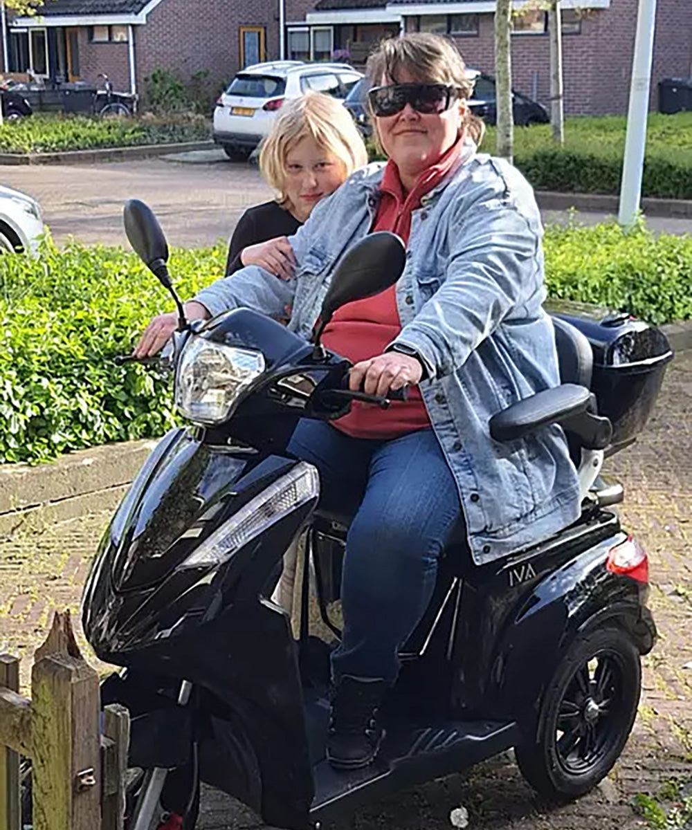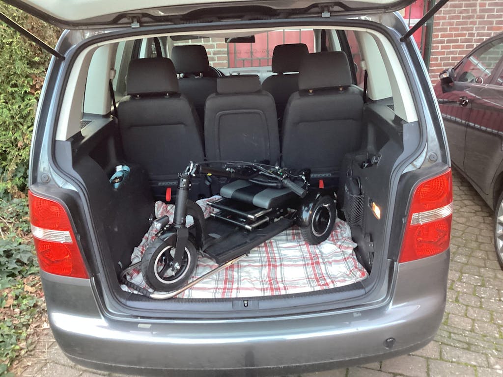 Afgelopen jaar heb ik een IVA Traveler 300 Rood van GoVida gekocht en ben er erg blij mee! Ik heb ME en kon niet meer elke dag met mijn honden wandelen en deze opvouwbare scootmobiel heeft het dagelijkse wandelen voor mij weer mogelijk gemaakt! Daardoor dat die opvouwbaar is, kan ik hem makkelijk mee in de auto nemen naar de wandelgebieden toe. Hij zit comfortabel met goede steun in de rug en op een accu vol rijdt die 25 km, met een snelheid van 5-12 km/h. Ik ga nu op vakantie en neem hem mee voor bezoeken aan Musea, daarvoor is die ook erg handig! Dus voor mij een heel goede aankoop!