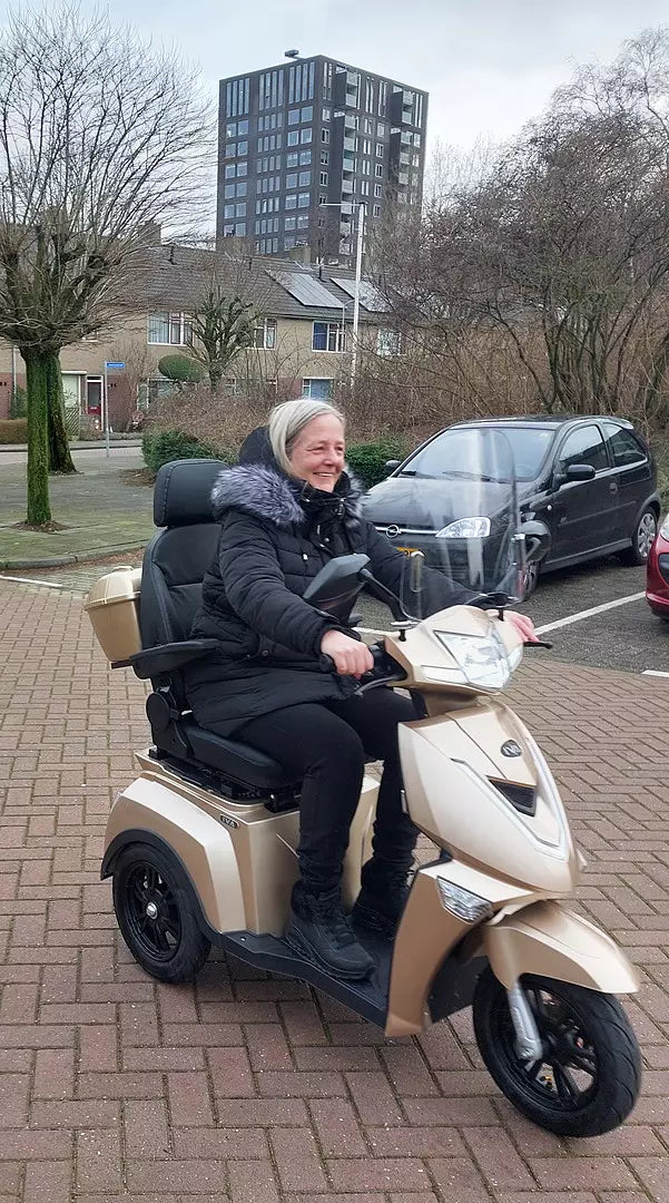 Geweldige scootmobiel! Ik was bang dat, aangezien het een 3 wieler is, ik mogelijk zou kunnen kantelen, maar hij is behoorlijk stabiel! Eindelijk niet meer aan huis gebonden, maar samen met dochter er lekker op uit kunnen en zonder moeite boodschappen doen. Ben heel blij met deze mooie scoot, die we samen "Eevee" genoemd hebben🤭
