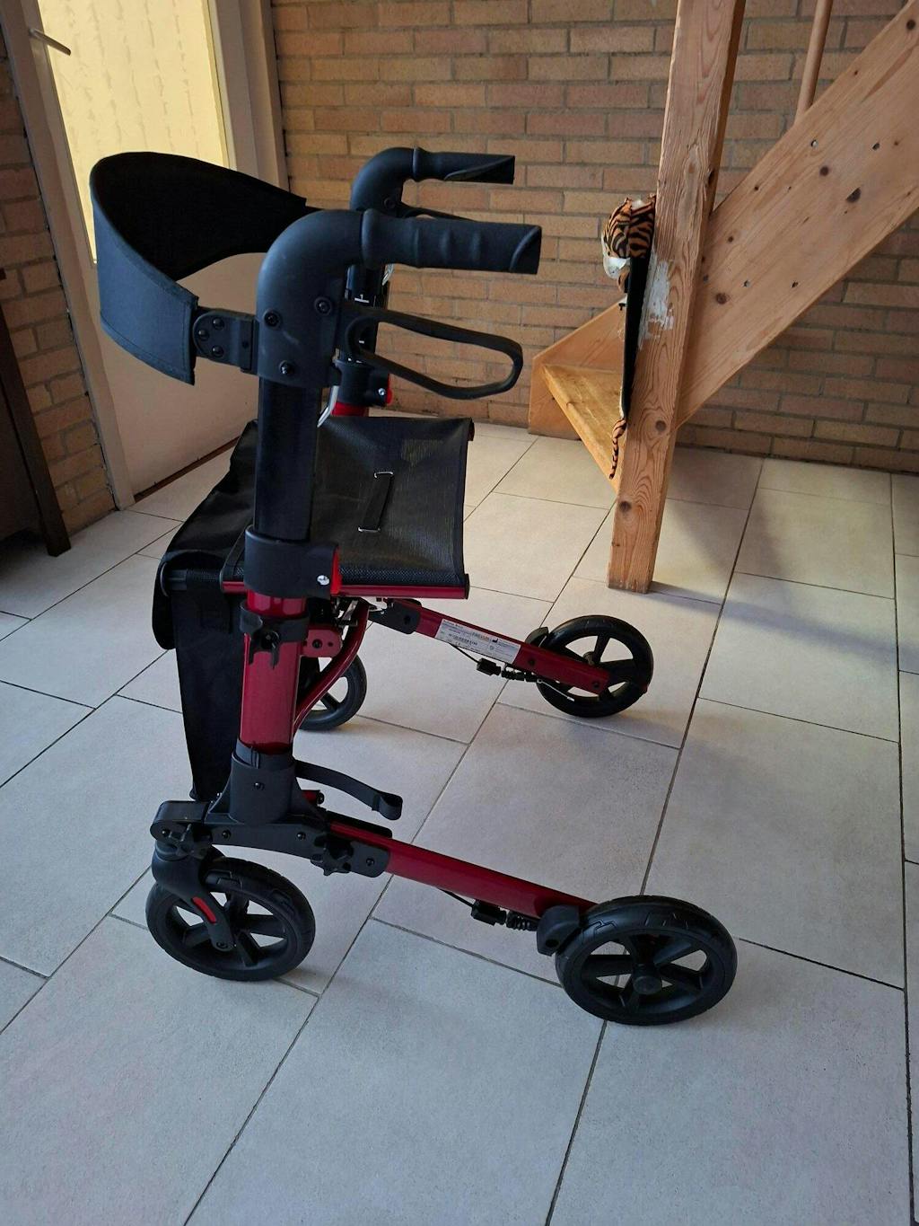 Ik heb hem cadeau gedaan aan mijn zus en die is er heel blij mee. Rijdt prima, is degelijk en remt ook goed. Wat ik ook fijn vond dat ik hem zelf makkelijk in elkaar kon zetten. Top Rollator! en voor een betaalbare prijs.