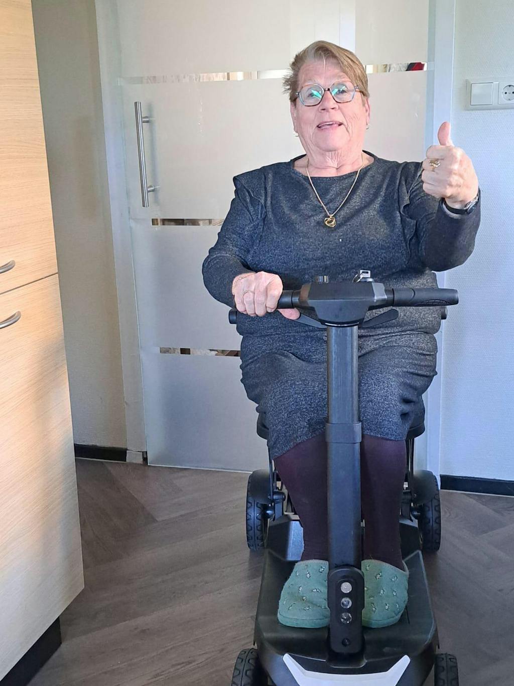 Lekker rijden met mij scootmobiel een verheerlijking van voort bewegen. iedereen vind hem prachtig