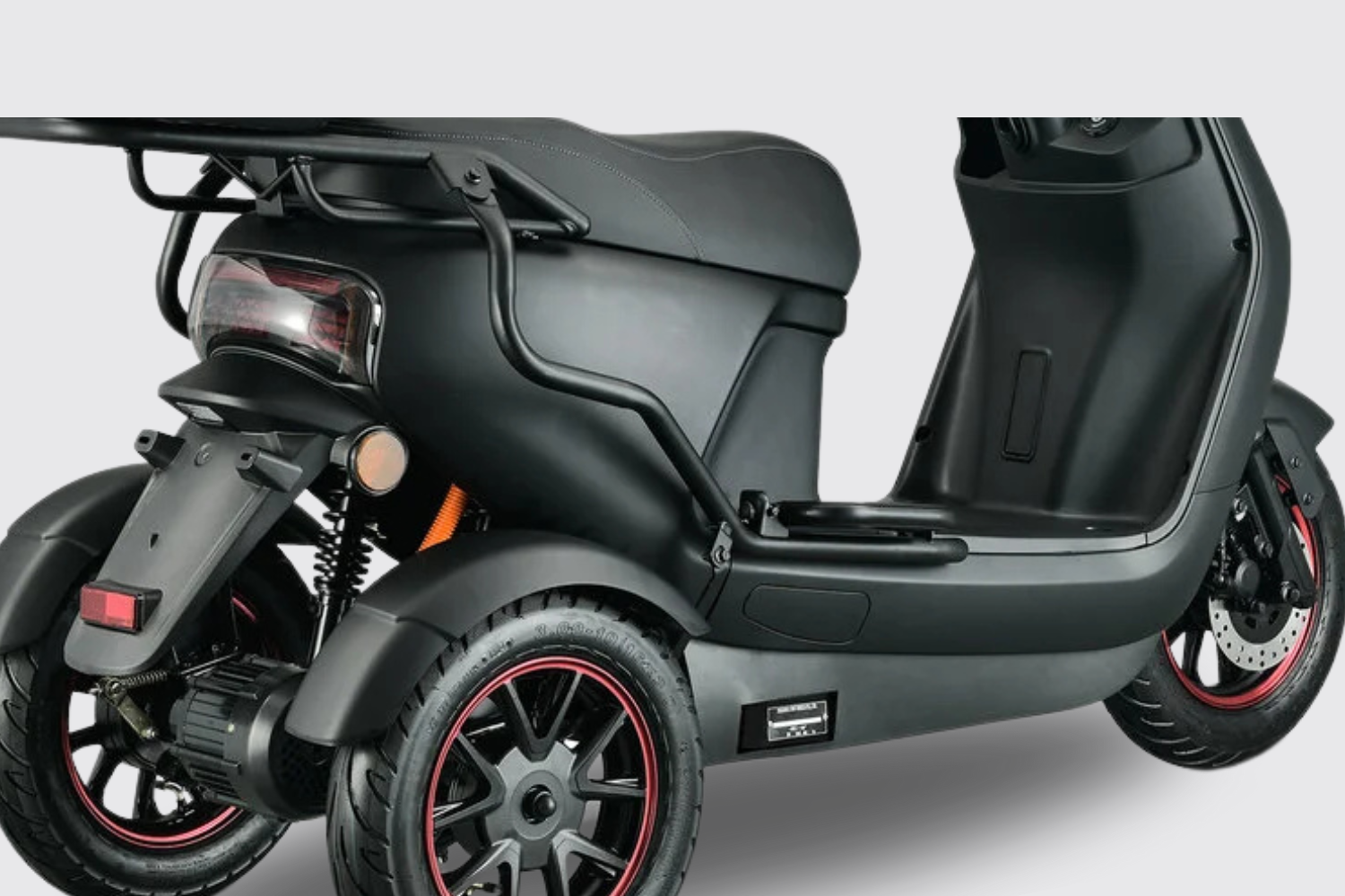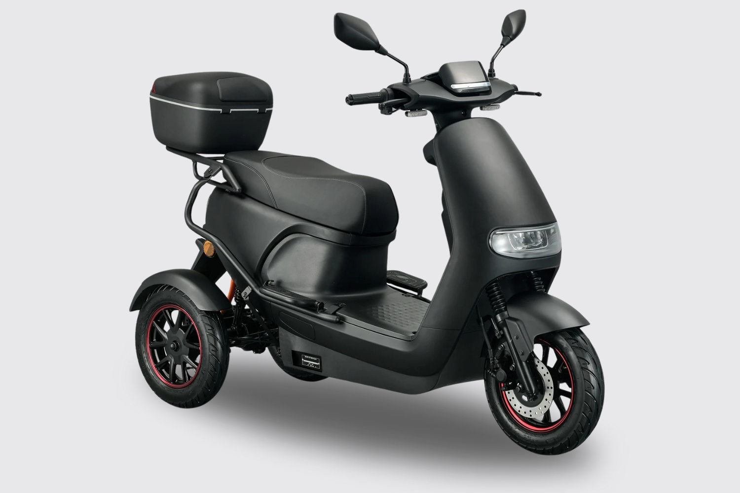 Door de drie wielen en de stevige achterwielen is de scootmobiel niet alleen extra wendbaar, maar ook stabiel.