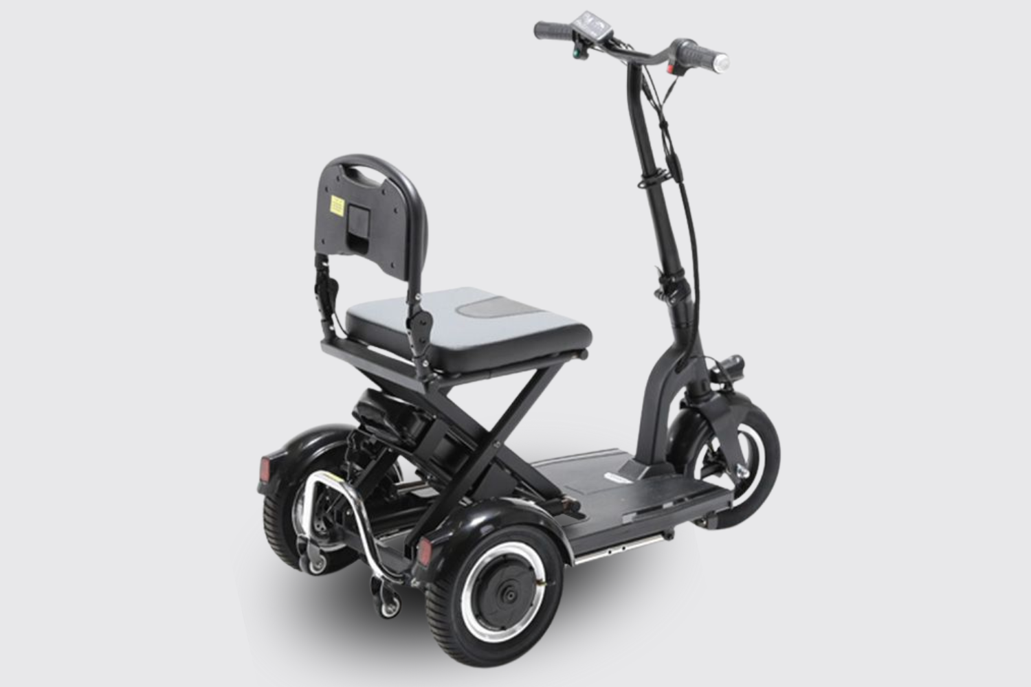 Een opvouwbare scootmobiel is kleiner dan een reguliere scootmobiel, maar bij de IVA Traveler 300 levert u niet in op comfort. De scootmobiel heeft comfortabele luchtbanden, waardoor u soepel rijdt, zelfs op oneffen terrein. Ook bevat de scootmobiel een comfortabele stoel. Het in- en uitladen in een auto is gemakkelijk dankzij de speciale dolly-functie, waarmee u de scootmobiel zoals een koffer rijdt.