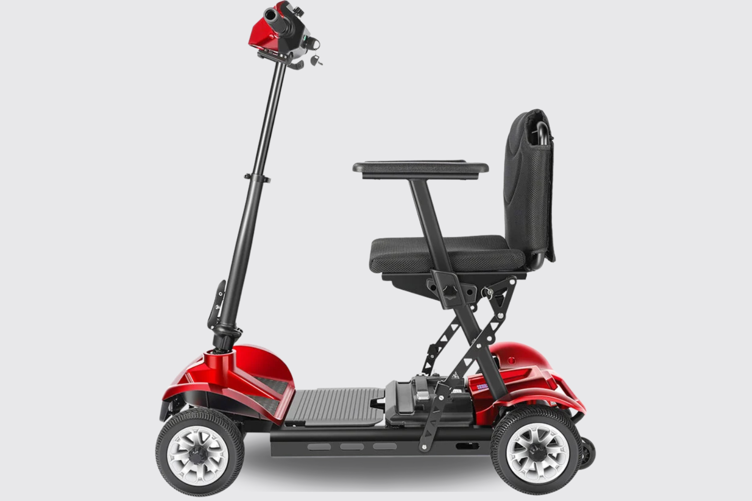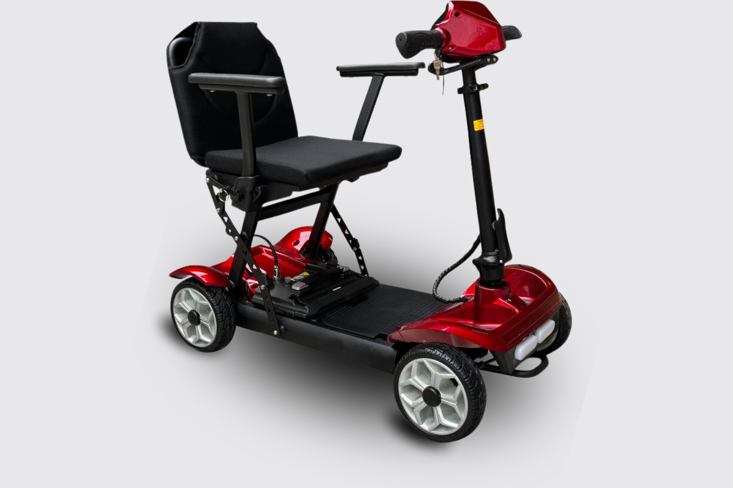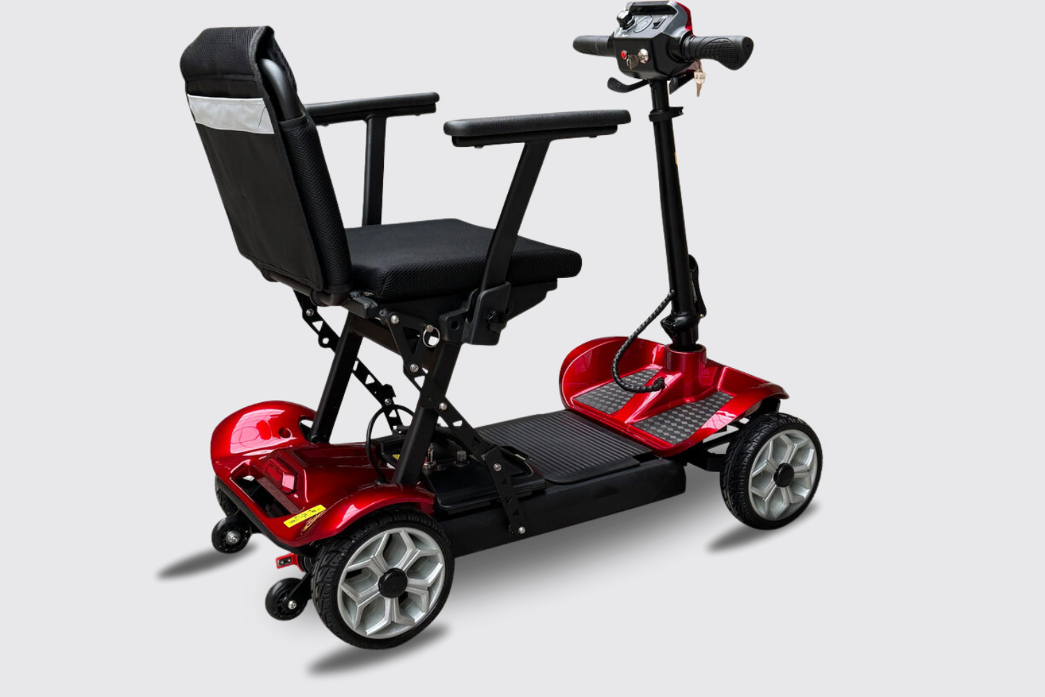 De IVA Traveler 600 is heel eenvoudig in te klappen, zodat u hem snel en zonder moeite in de kofferbak kunt stoppen. Dankzij het compacte formaat, bergt u het makkelijk op. Ook het in- en uitladen van de scootmobiel is eenvoudig door de handige dolly-functie, waarmee u de scootmobiel als een koffer kunt rollen.